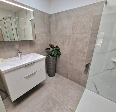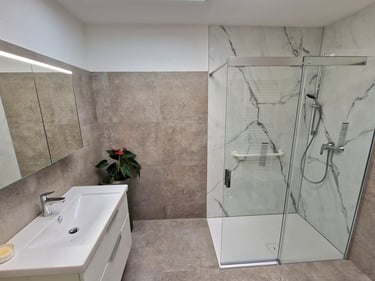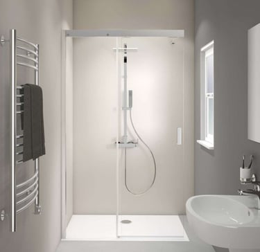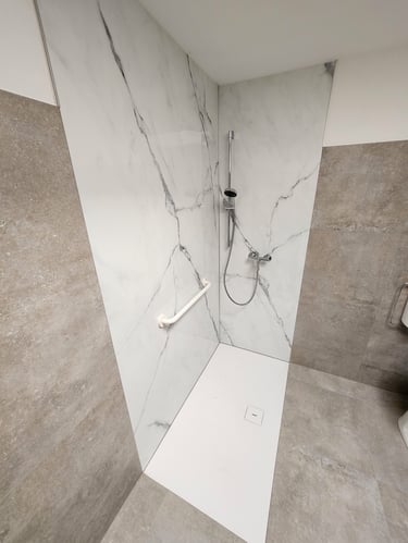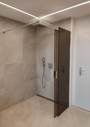Durch die Auswahl der richtigen Materialien erleben Sie ein komplett neues Duscherlebnis - barrierefrei und pflegeleicht